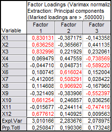 Для того, що б правильно інтерпретувати значення головних компонент, застосуємо обертання чинників. Обертання, яке пропонується використати - Varimax Normalized. На рис. 3.6 представлені факторні навантаження після обертання.