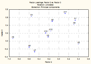 Рисунок 3.9 - Факторні навантаження факторів 2 і 3